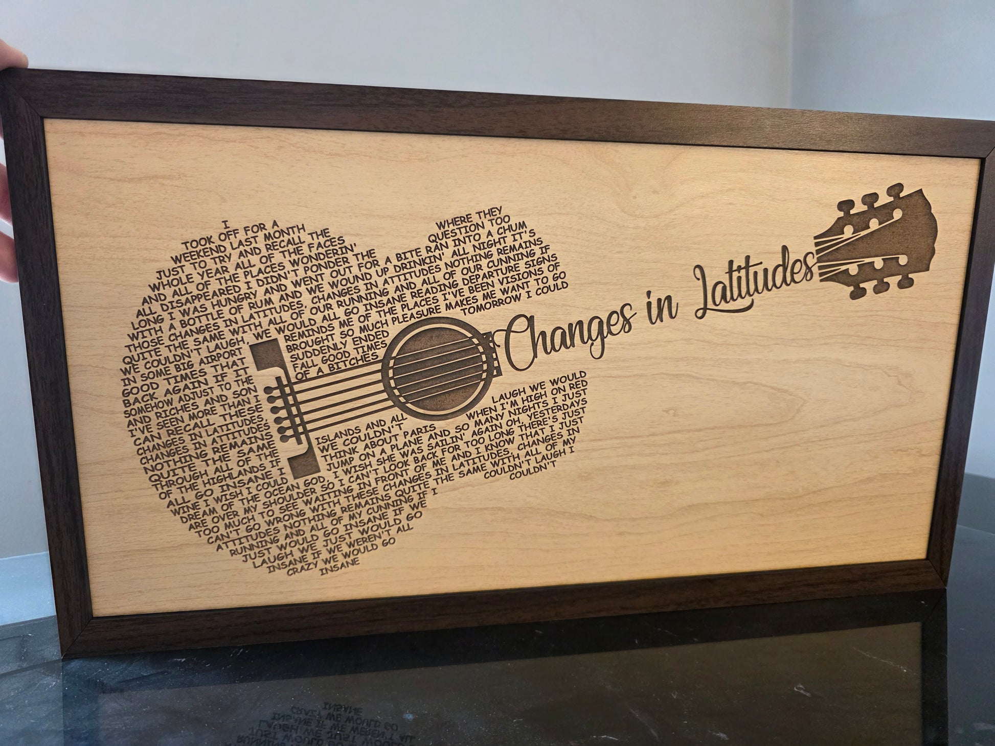 Our LyricArt pieces are handcrafted wood art where music and craftsmanship come together. Each design transforms meaningful song lyrics into the shape of an instrument, creating a striking visual story as powerful as the music itself.